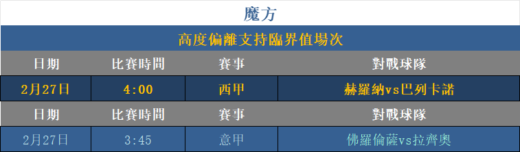 利用「魔方關系」進行支持趨勢預測分析,超越臨界數值之上可視為低機率方向,此方式對比賽方向分析有顯著幫助效果。