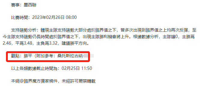 【解鎖內容為以上賽事支持趨勢預測圖展示,以及根據分析預測圖進行相對低機率方向觀點判斷。解鎖內容僅代表個人知識領域觀點,與本網站無關】