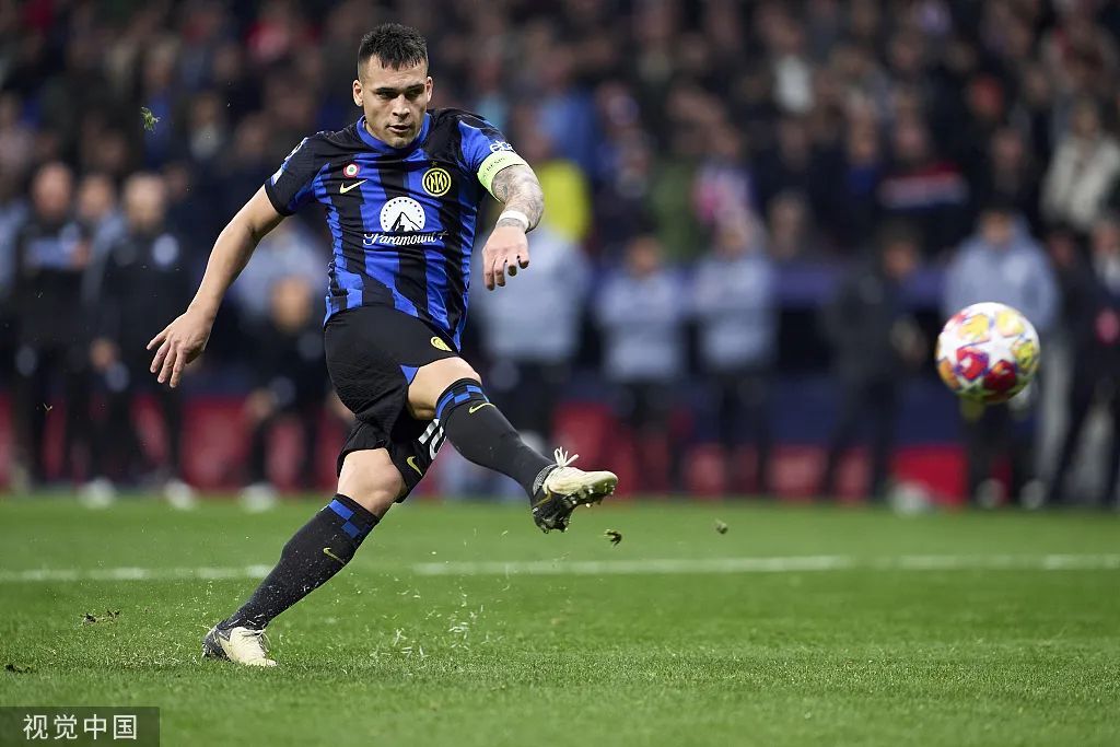 3月12日,23/24欧冠1/8决赛次回合,马德里竞技2-1国际米兰。劳塔罗主罚点球瞬间