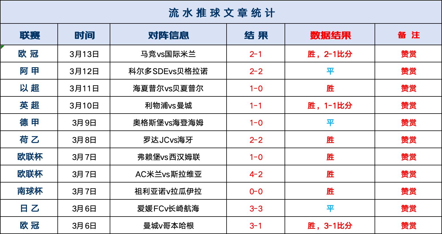 【日韩教主】独家日韩比赛一手资讯,完善的比赛模型库,解读精准独到!赞赏回顾:流水赞赏昨天高歌猛进,获得欧冠2-1比分,目前7连胜,马竞2-1国际米兰,另外公开和精选也是全部拿下。流水赞赏曾连续6周周榜第一,更是有156天总体正确率近7成(不含走)的长期稳定发挥,今天继续一起采摘果实!!!