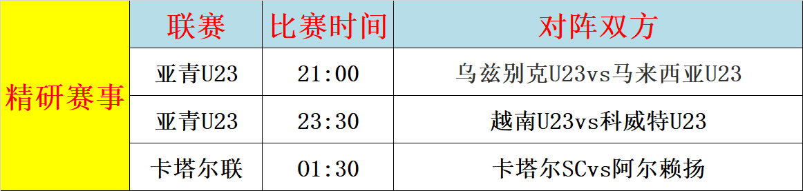 2、越南U23vs科威特U23:越南U23上轮热身赛逼平了约旦U23,双方0比0打平,科威特U23不低科威特,还丢了3球,防守端形同虚设。